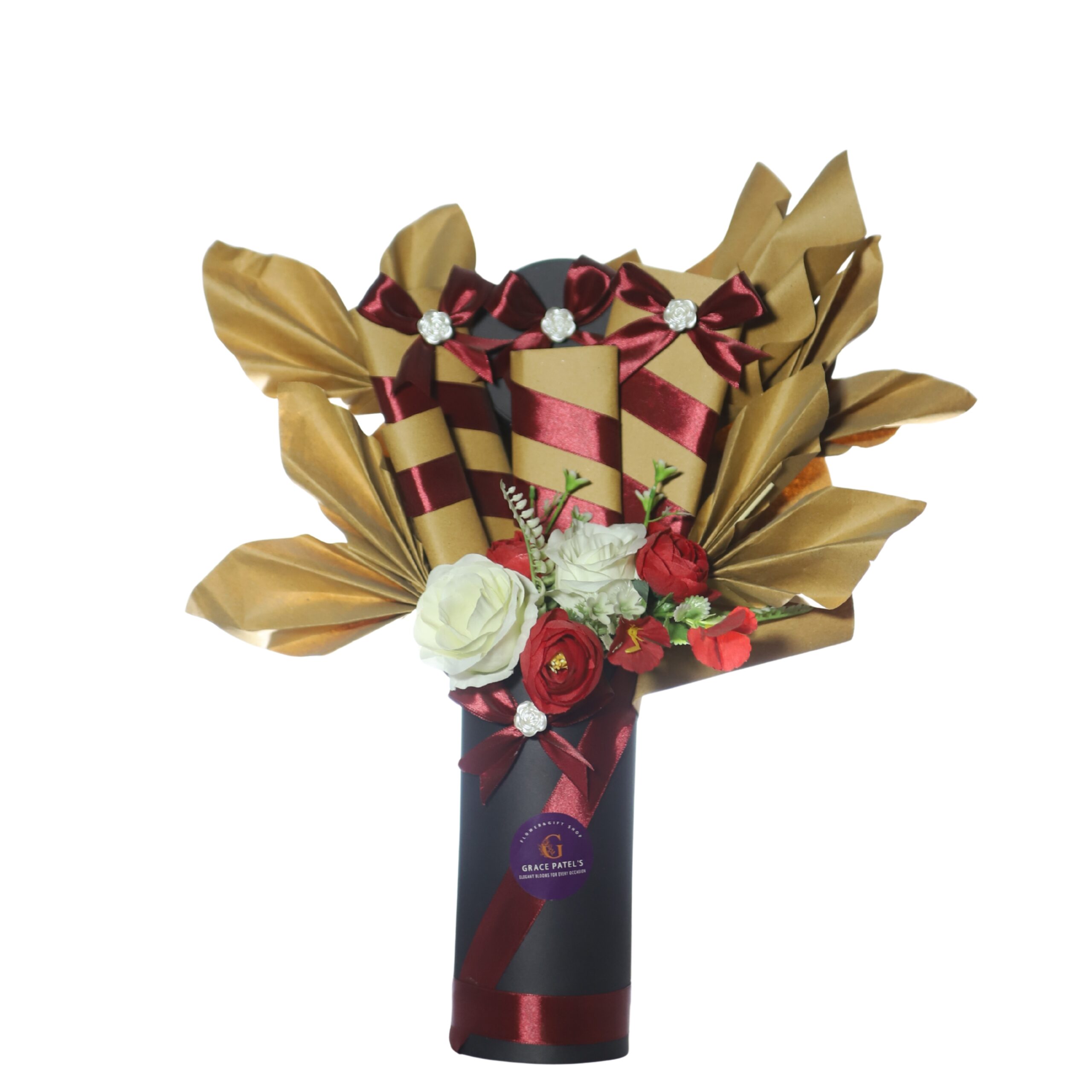 4 Chocolate, Artificial flowers. Botal Box